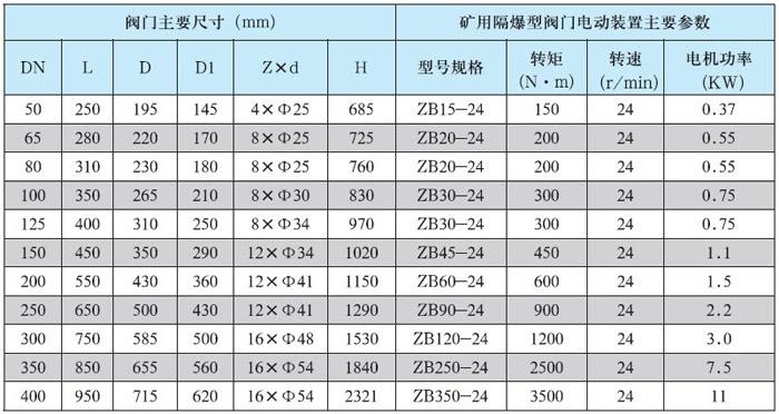 三、礦用本安型防爆電動球閥技術(shù)參數(shù)